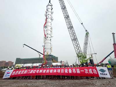 近日,由北京石油化工工程有限公司總承包的荊門源晗電池材料有限公司20萬噸/年乙醇裝置(含電子級乙醇)項目核心設備電子級脫輕塔首段吊裝順利完成,標志著乙醇主裝置大型設備安裝工作正式啟動,項目全面進入設備安裝和工藝配管階段。荊門源晗電池材料有限公司總經(jīng)理、北油工程公司副總經(jīng)理尹長炳,以及監(jiān)理單位和施工單位主要負責人共同見證了此次重要吊裝作業(yè)。