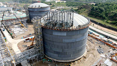 作為項目核心設施的4個LNG儲罐取得新進展,1#、2#內罐壁已施工至第四代板組對焊接,同時2/3罐底作業面已移交保冷施工。截止目前4臺LNG儲罐累計完成焊縫延長米總量的71%,焊接一次合格率保持在99.2%以上。