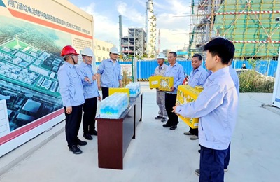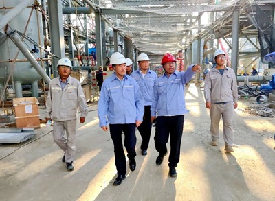 8月20日,北京石油化工工程有限公司黨委書記、董事長許緘濤帶隊到公司總承包的湖北荊門源晗電池材料有限公司電解液全驅體項目20萬噸/年乙醇裝置(含電子級乙醇)開展實地調研。當前項目總體進度達70%,其中設計工作全部完成,采購進度完成86%,施工進度完成65%,各項工作正按計劃有序推進。公司總經理助理張文立、項目負責人陪同調研。
