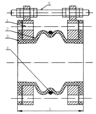 4、 橡膠接頭與管道法蘭連接時,螺栓絲桿應伸向管道法蘭一端,以防止螺紋將受壓膨脹時橡膠接頭的拱起部分擠傷或扎傷,每一端的螺栓必須對稱地加壓擰緊,使所有螺栓松緊一致,使用條件惡劣的場所,除增加平墊外,還應增加彈簧墊圈,以防螺母松動。